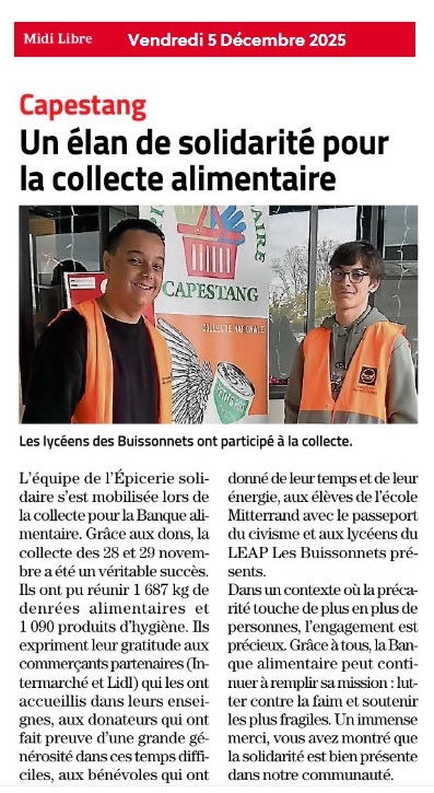 Encore un projet solidaire mis en oeuvre avec l’épicerie solidaire grâce à Mme Polge qui en est trésorière. Nathan et Matéo se sont portés volontaires pour participer à la collecte et se sont investis toute la journée. Une réussite ! Bravo et merci à tous.